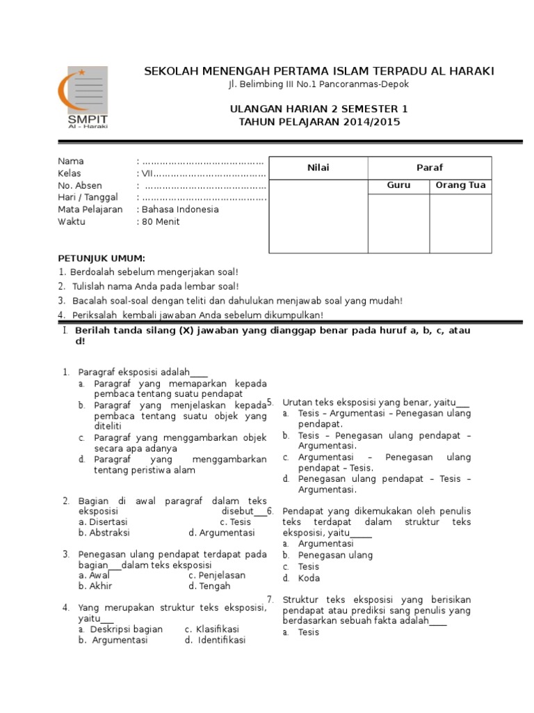 Soal Bahasa Indonesia Kelas 7 Semester 2 / Contoh Soal UTS Bahasa Indonesia Kelas 7 Semester 2 / Download soal dan kunci jawaban uts/pts matematika semester 2 kelas 7 smp/mts kurikulum 2013.. Contoh soal ujian semester 1 prakarya kelas 7 ilmu pengetahuan 8. Apakah sudah berhasil menjawab seluruh soal untuk semakin menguatkan kemampuan siswa kelas vii pada mata pelajaran bahasa indonesia tersebut, cari lebih banak lagi soal soal uts bahasa. Bantu jawab dan dapatkan poin. Bagi bapak dan ibu guru yang saat ini mengajar di jenjang smp/mts tepatnya di kelas 7 dan sedang mengajar mata pelajaran bahasa indonesia maka kiranya artikel ini akan dapat bermanfaat bagi anda terutama. Mereka berlatih setelah jam pelajaran sekolah di aula.