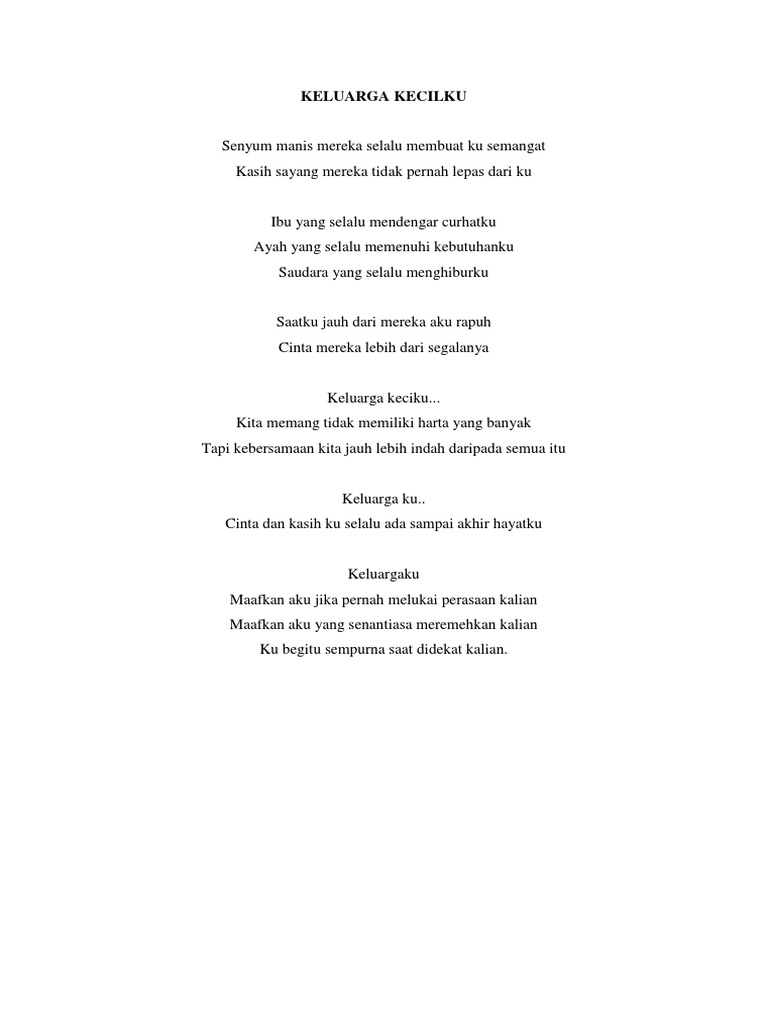 Koleksi 7 Puisi Tentang Keluarga. Check spelling or type a new query. Maybe you would like to learn more about one of these? We did not find results for: